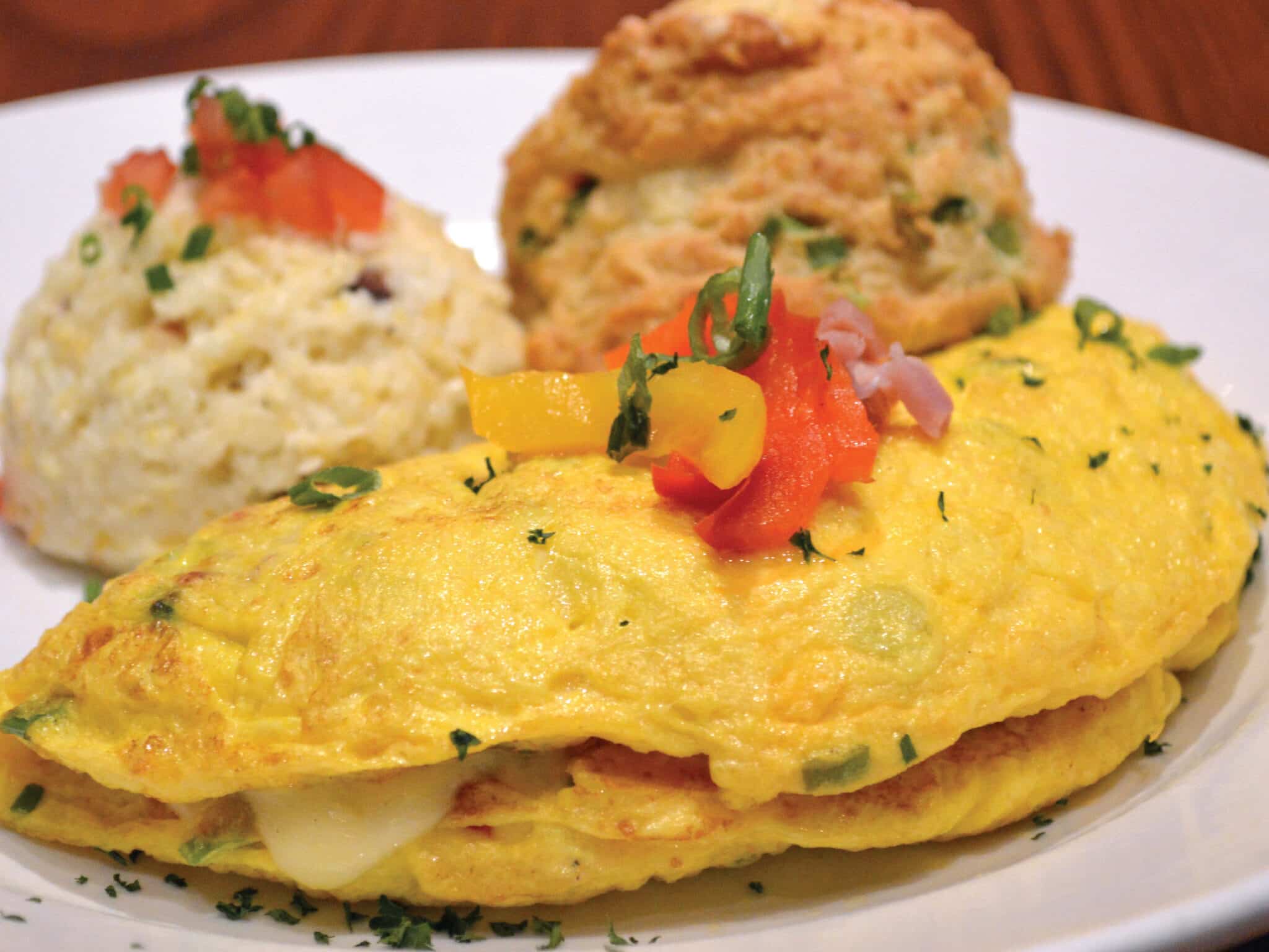 ? Western Omelet: Hearty, smoky, and served with a pimento cheese biscuit!