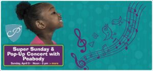 Music of all sorts will fill the floors of Port Discovery on Sunday, April 9! Join us and the Peabody Ensemble for a special Pop-Up Concert at 2PM. Plus, enjoy Jingle Jangle Music Time, the Percussion Garden, Kamishibai Story Time and Choo-Choo Circle Time along with pop-up art projects throughout the day!