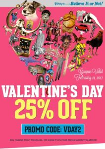 VALENTINE’S DAY DISCOUNT! 25% OFF Tickets to Ripley’s. Online Tickets Good For 1 Year!